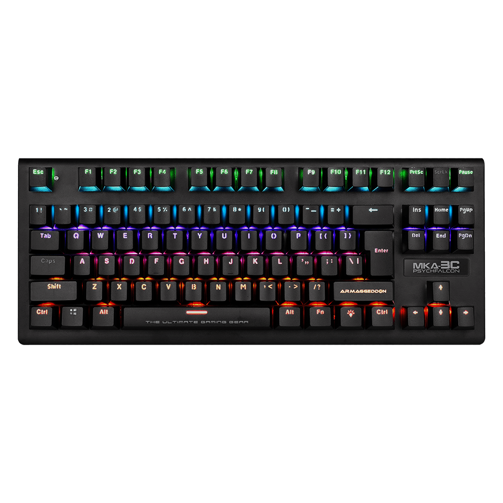 - 87 RGB LED Outemu Mechanical Switch- Mehanička tastatura sa konkavnime tasterima- Do 50 miliona pritisaka po tasteru- KevlarTech™ low profile tasteri- 9 BackLight Effects- Outemu Blue Switch (Clicky and Heavy), Total Travel: 4.00mm, Work Travel: 2.20 +- 0.6mm, Work Force: 65 +- 150g, Tactile Travel: 1.80mm LifeSpan: 50 Million Cycles- 1.5m dužina kabla- Dimenzije tastature 367 x 147 x 41mm