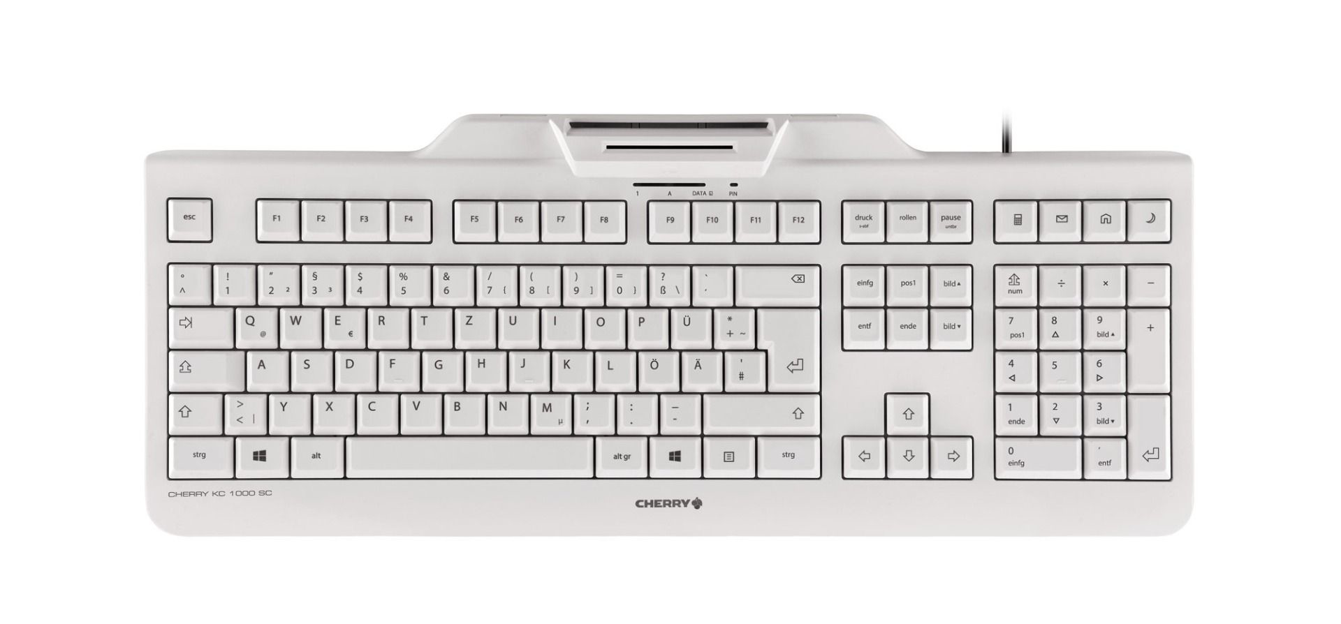 CHERRY KC 1000 SC kombinuje prednosti klasične CHERRY kancelarijske tastature sa čitačem smart kartica (smart card reader) .