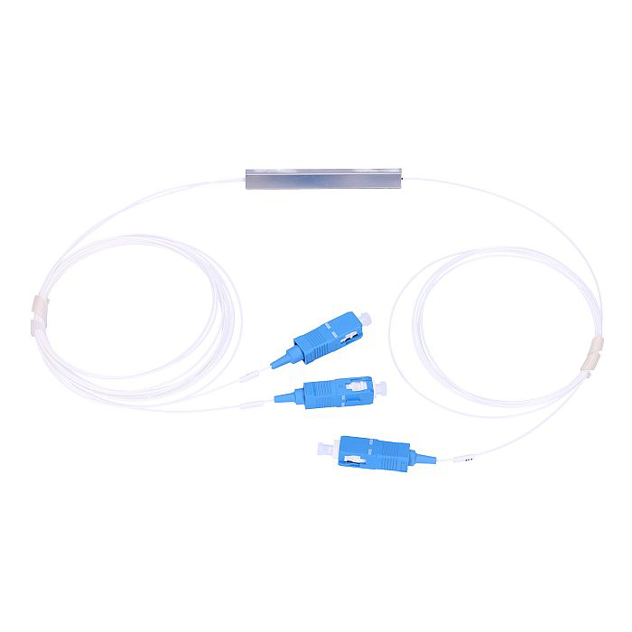 PLC spliter sa simetričnom distribucijom snage 1:2 sa SC/UPC konektorima. Spliter je izgrađen na tankom kablu od 0.9 mm, što njegovu implementaciju čini lakšom.