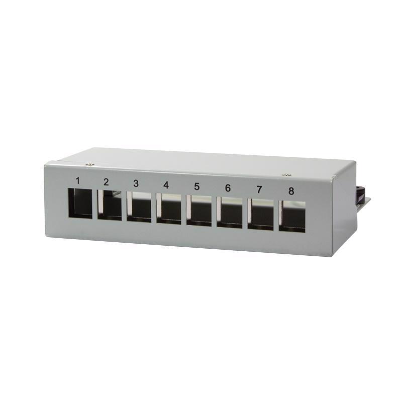 - Stoni keystone panel za 8 modula, oklopljen- Pogodno za Keistone module širine do 17 mm- Čelično kućište oklopljeno- Konfiguracija kabla od 180 stepeni - Za površinsku montažu- Pogodno za montažu na DIN šinu (nosači se kupuju odvojeno)- Boja: RAL7035 svetlo siva