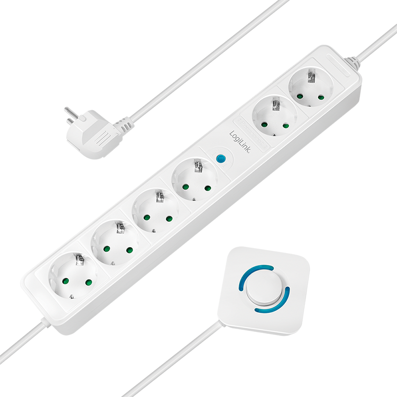 Logilink produžni kabl 6 mesta, nožni prekidač, 1.5m, beli