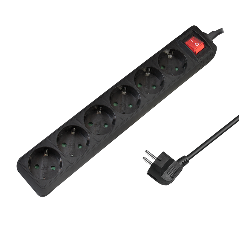 - 6 utičnica- Sa osvetljenim prekidačem za uključivanje/isključivanje- Utičnice sa sigurnosnim zatvaračem- Snaga: 230 V/16 A, 50 Hz, max. 3500 W- Specifikacija kabla: H05VV-F 3G 1,5 mm²- Dužina kabla: 1,5 m- Boja: crna