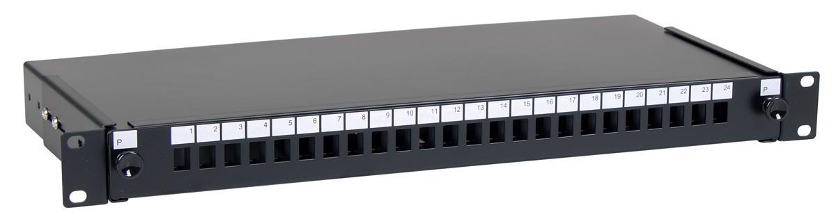 Distribucija optičkih vlakana sa visinom od 1U do 19" rack u crnoj boji, dubine samo 20,5 cm, prednja strana je opremljena rupama za do 24 SC simplex ili 24 LC duplex optičkih konektora. Optička patch panel omogućava montiranje do 4 čaure na zadnjoj strani (nisu uključene) ) za dovod optičkih kablova. Kada takođe sadrži kasetu za zaštitu zavarivanja.