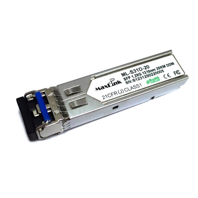 ML-S31D-20 je 1.25G SFP modul sa talasnom dužinom 1310nm, 2 LC konektora za maksimalnu udaljenost 20km sa singlemode vlaknom. SFP modul podržava DDM - digitalno dijagnostičko praćenje.