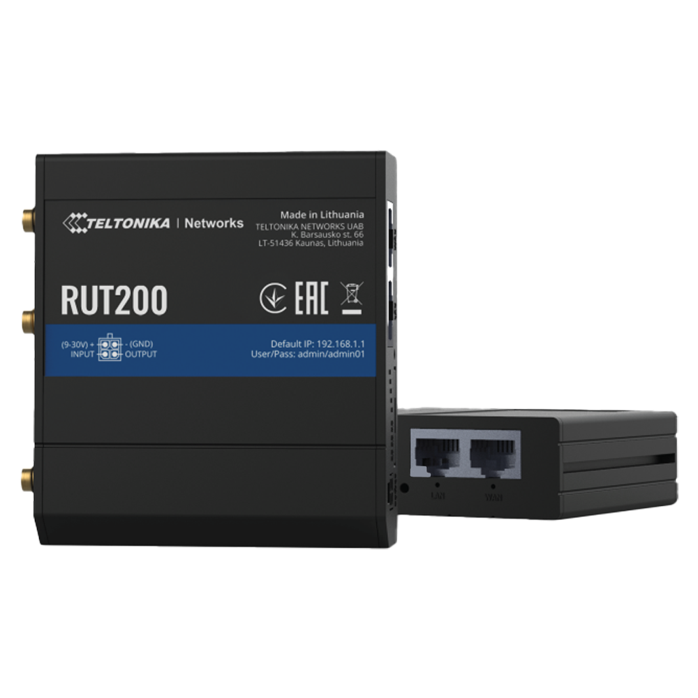 RUT200 je kompaktni industrijski ruter koji obezbeđuje pouzdano, povezivanje u rigoroznim uslovima uobičajenim u industrijama kao što su automatizacija, transport i proizvodnja. Ovaj model je opremljen sa 4G LTE, Wi-Fi i dva Ethernet porta, što ga čini idealnim za brzo podešavanje primarne i rezervne veze sa mogućnostima daljinskog upravljanja.